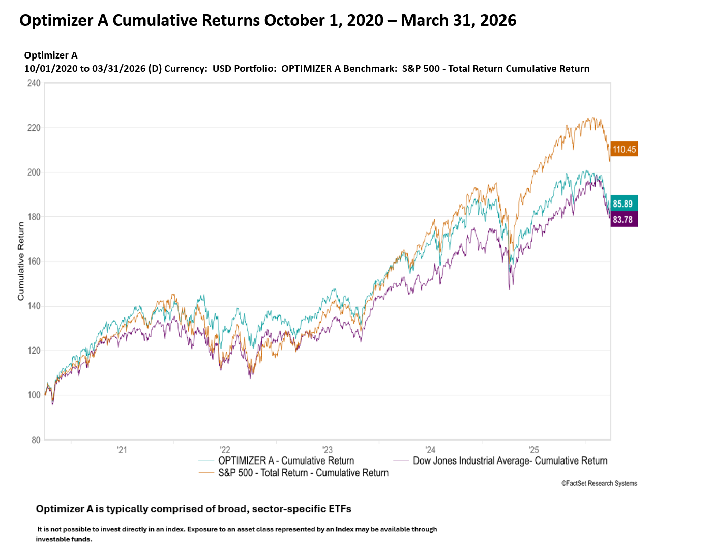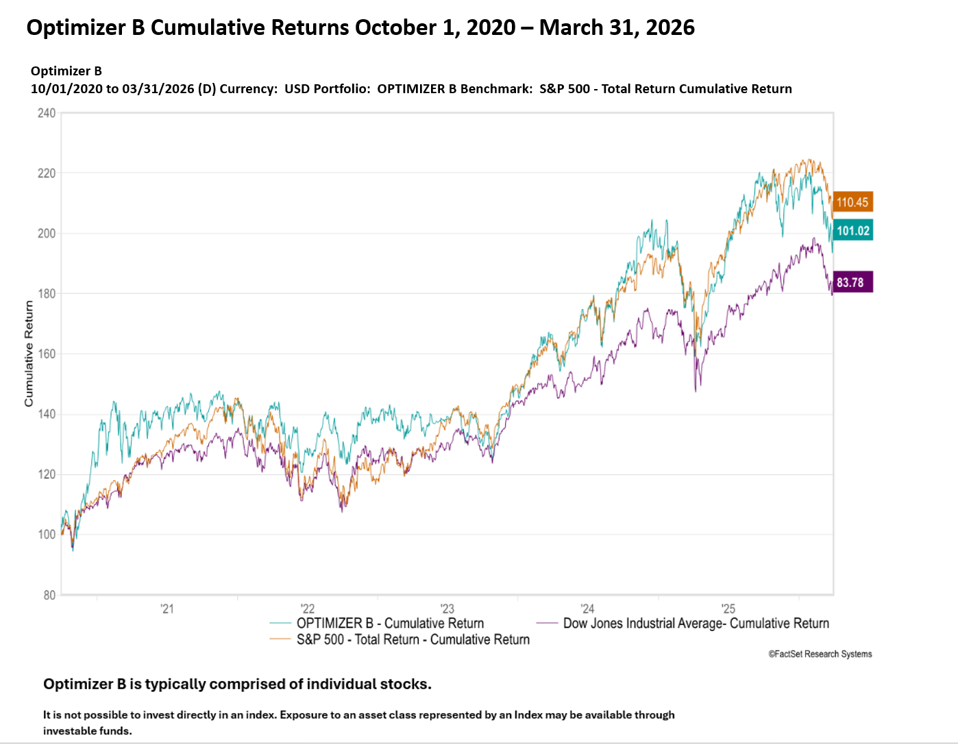 9. Cumulative returns are the compounded daily returns assuming constant-dollar (time-weighted) returns over the time period presented, from 1 October 2020 through 31 March 2026. They are not annualized. Standard Deviations and Sharpe Ratio’s (where presented) are annualized.