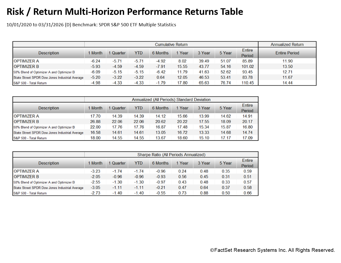 12.The 50/50 Blend Optimizer is a 50% allocation each of Optimizer A and of Optimizer B.